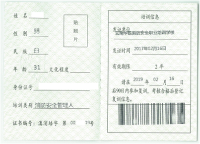 培訓(xùn)后頒發(fā)云南省消防協(xié)會統(tǒng)一印制的《消防安全合格證》,證書全省通用。本證書面向社會單位開展消防安全教育、消防安全責(zé)任人、管理人培訓(xùn)、滅火演練培訓(xùn)等,并頒發(fā)消防安全培訓(xùn)合格證。